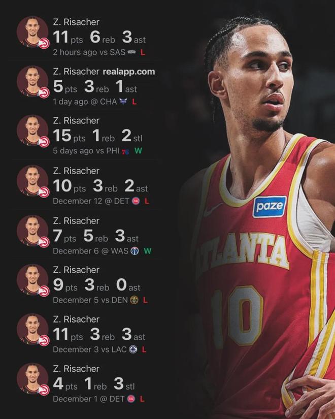 今天來看看2024屆前四順位,本賽季數(shù)據(jù)如何?里薩謝本賽季為老鷹首發(fā)出戰(zhàn)26場比賽,場均出戰(zhàn)24.7分鐘,得到11分2.8籃板1.6助攻1.1搶斷0.5蓋帽0.8失誤,三項命中率:45.4%,31.3%,70.6%。得分和籃板均低于新秀賽季。